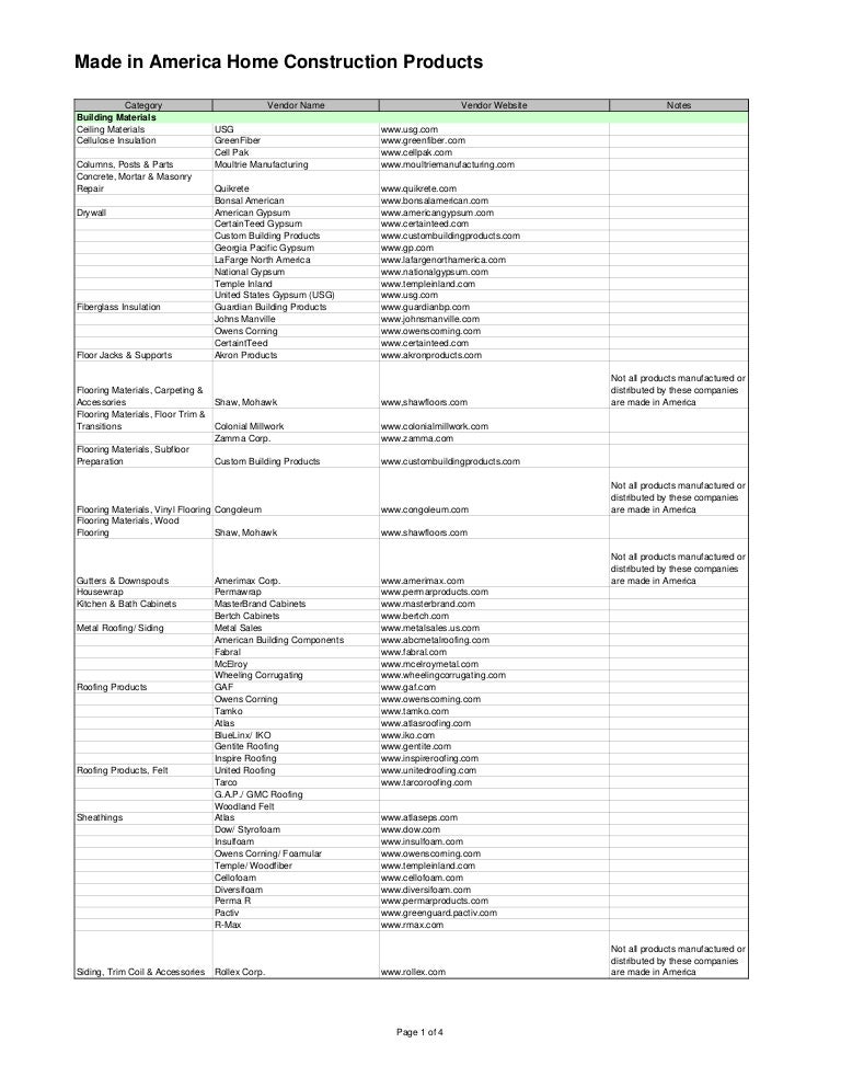 Made In America Home Construction List