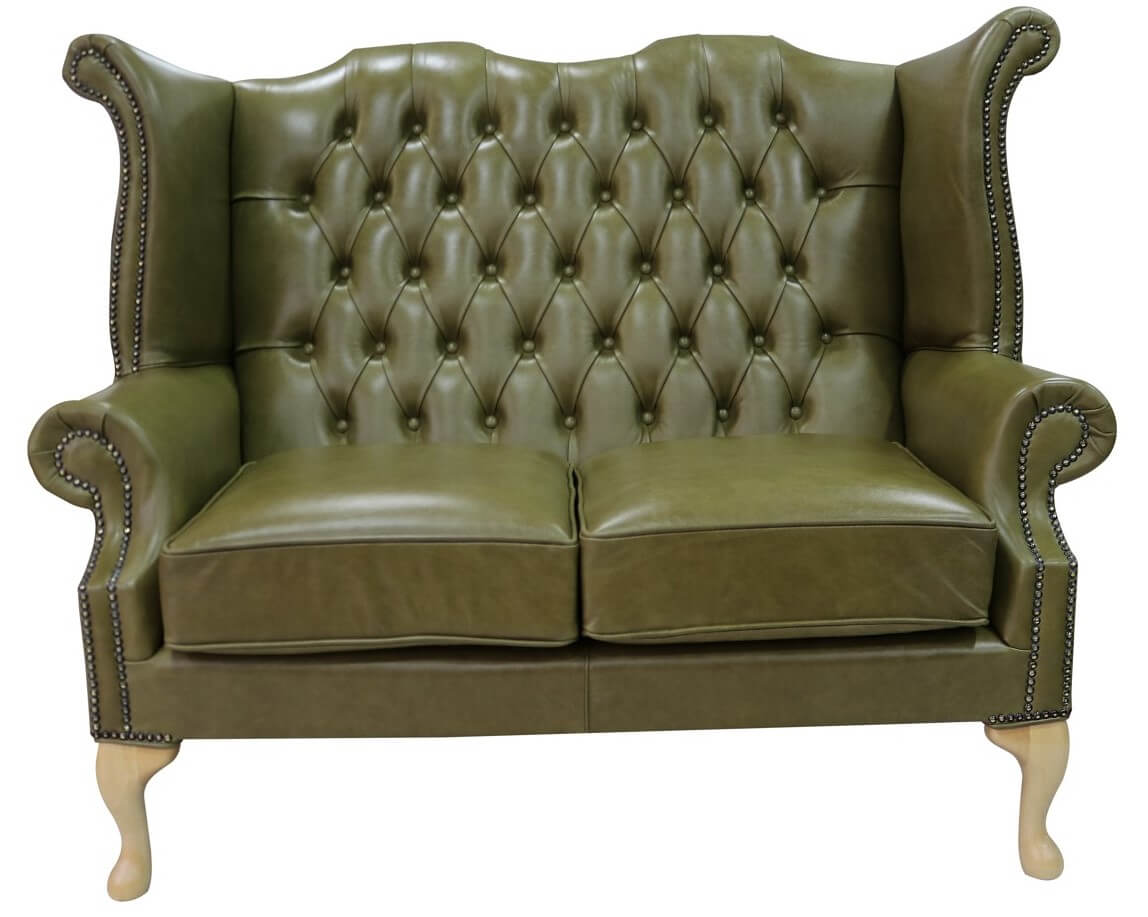 Chesterfield 2 Seater Queen Anne High Back Sofa Old English Olive