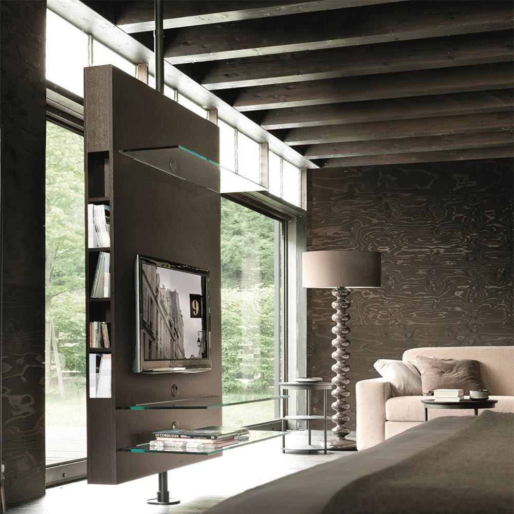 Contemporary Tv Stand Swivel Floor To Ceiling Glass Domino