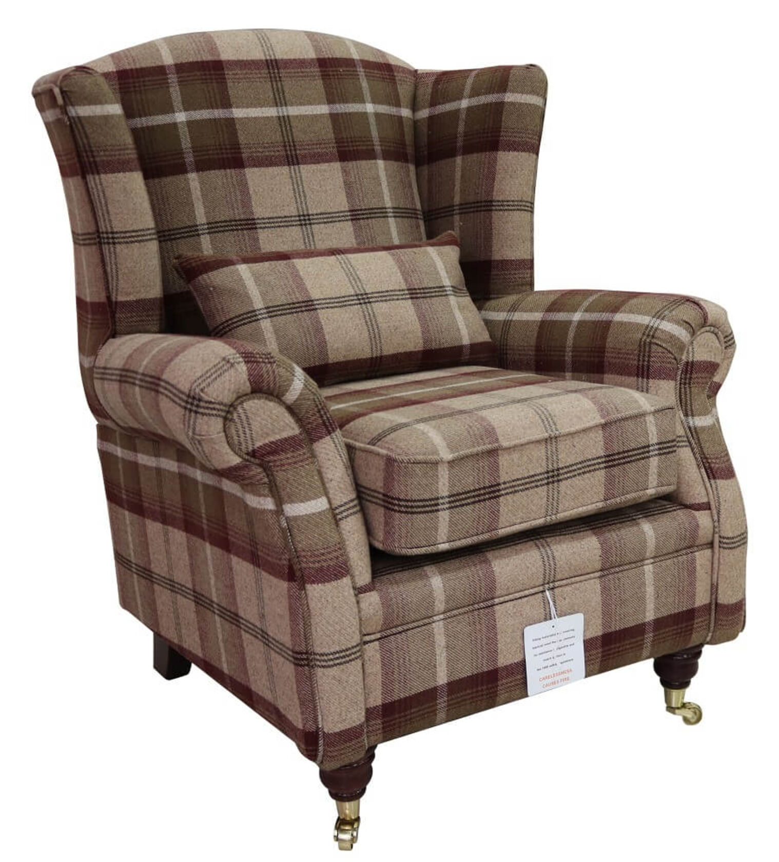 Large Taupe Beige Tartan Armchair Bedroom Lounge Wingback Chairs
