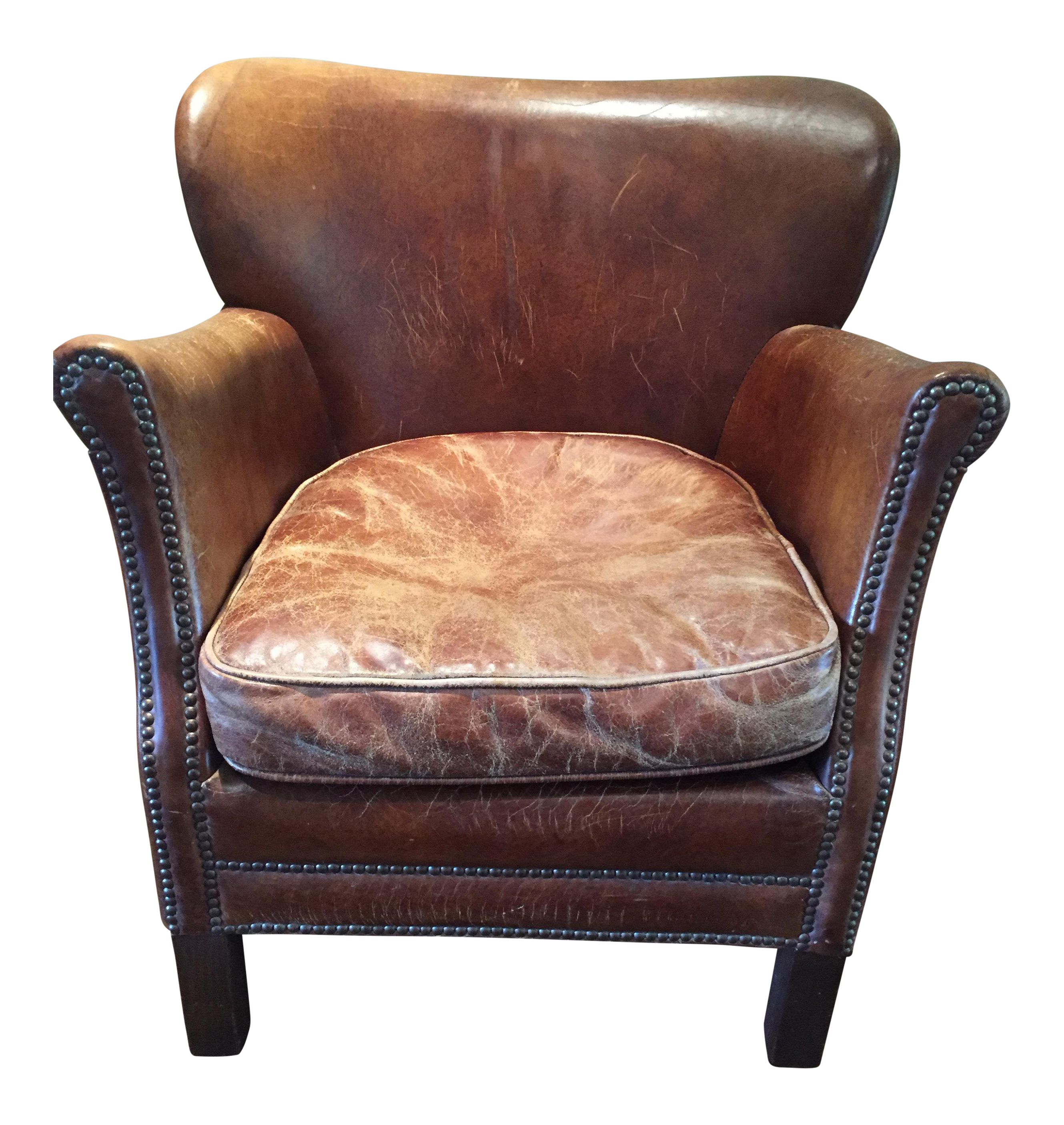 Little Professor Tub Club Chair Real Vintage Distressed Tan Brown